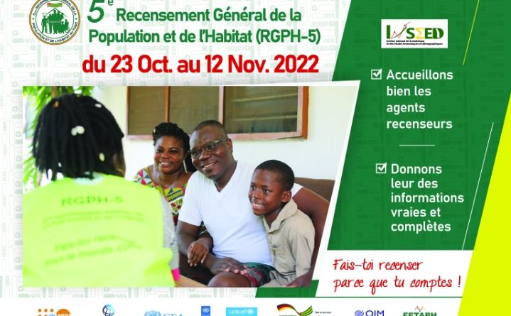 Le Togo s’apprête à réaliser son 5eme Recensement général de la population et de l’habitat (RGPH-5) du 23 octobre au 12 novembre 2022 sur toute l’étendue du territoire national. Cette opération vise à recueillir des informations sur les individus, les ménages et les logements. Dans le cadre de ces travaux de dénombrement, les agents recenseurs identifiables par leurs badges et gilets passeront de maison en maison pour recenser toute la population y compris celle des communautés étrangères vivant au Togo.