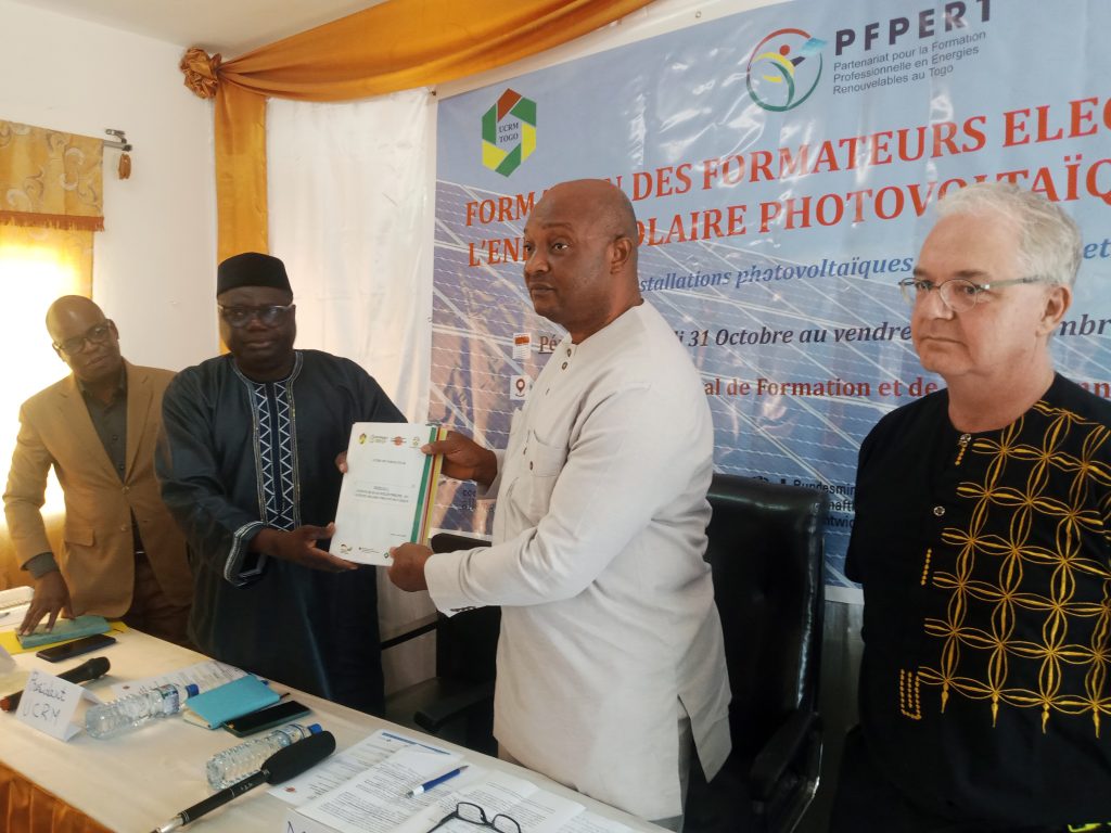 Initiée par l’Union des Chambres Régionales des Métiers (UCRM) du Togo, dans le cadre du projet Partenariat pour la Formation Professionnelle en Energies Renouvelables au Togo (PFPERT), cette formation vise à renforcer les capacités des formateurs, afin qu’ils puissent assurer des formations des artisans.