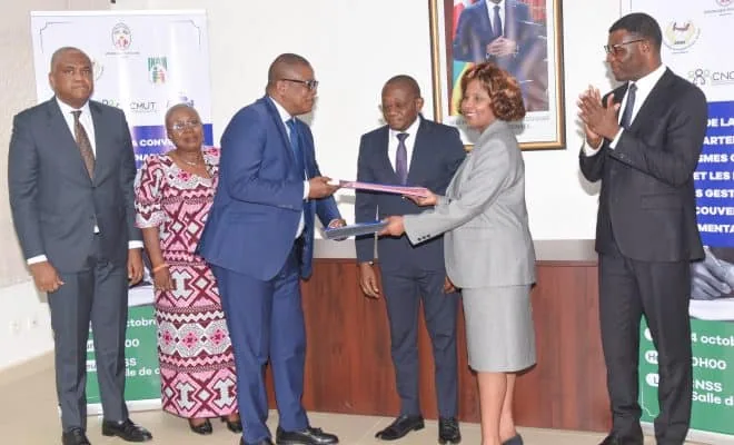 Les organismes gestionnaires de l’Assurance Maladie Universelle (AMU), à savoir la Caisse Nationale de Sécurité Sociale (CNSS) et l’Institut National d’Assurance Maladie (INAM), ont signé ce 14 octobre 2025, à Lomé, une convention-cadre de partenariat avec les institutions privées gestionnaires de couvertures complémentaires santé, notamment les compagnies d’assurances membres du Comité des Assureurs du Togo, les sociétés de courtage regroupées au sein de la Fédération Togolaise des Assureurs Conseils (FETAC), et les mutuelles membres du Cadre National de Concertation des Mutuelles du Togo (CNCMUT).