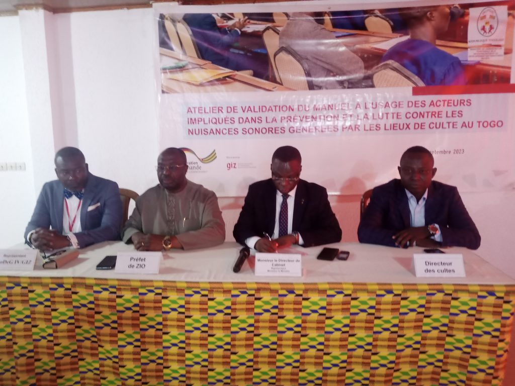 Le ministère de l’Administration Territoriale, de la Décentralisation et du Développement des Territoires avec l’appui de la GIZ, à travers son Programme Décentralisation et Gouvernance phase IV (ProDeG IV), a organisé ce 27 septembre 2023, à Tsévié, un atelier de validation du manuel à l’usage des acteurs impliqués dans la prévention et la lutte contre les nuisances sonores générées par les lieux de culte au Togo.