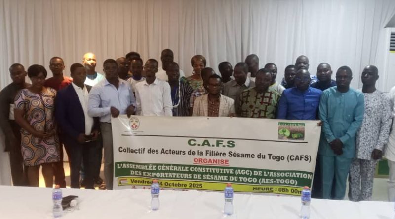 Le Collectif des Acteurs de la Filière Sésame du Togo (CAFS) a organisé le 24 octobre 2025, à Lomé, l’Assemblée générale constitutive de l’Association Togolaise des Exportateurs de Sésame (ATES). A l’issue des travaux, un conseil d’administration présidé par M. Bitoka Timidiba a été mis en place.
